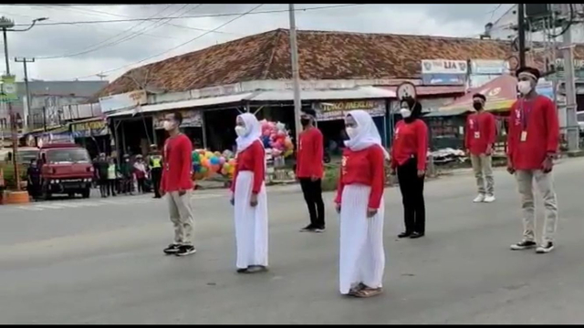Lampung Geh, Tulang Bawang – Aksi masyarakat Tulang Bawang, Lampung hentikan aktivitas dan mengambil sikap sempurna di jalan saat HUT Ke-76 RI pukul 10.17 WIB, Selasa 17 Agustus 2021.