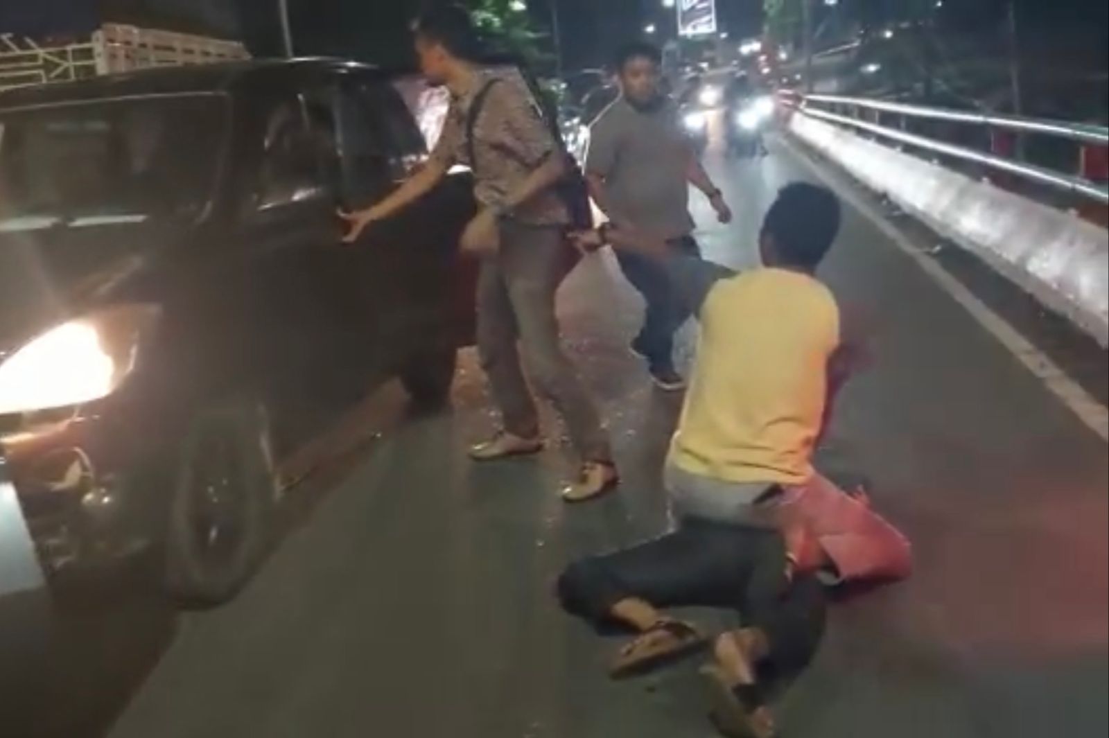 Lampung Geh, Bandar Lampung – Aksi penangkapan komplotan perampok mobil lintas provinsi di atas flyover Transmart, Sukarame, Kota Bandar Lampung pada Sabtu dini hari (28/5/2022).