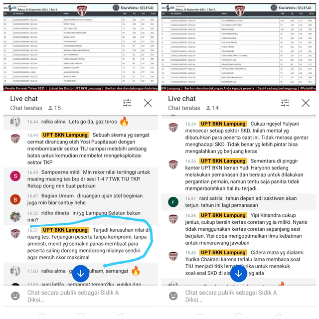 Lampung Geh, Bandar Lampung – Hal unik terjadi saat live streaming Seleksi Kompetisi Dasar (SKD) Calon Pegawai Negeri Sipil (CPNS) di akun YouTube UPT BKN Lampung, Selasa (14/9/2021).