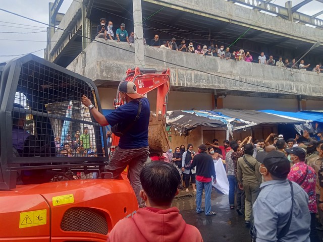 Sore ini, satu unit alat berat telah dikerahkan untuk menertibkan lapak PKL di Jalan Bukit Tinggi lengkap dengan aparat keamanan. Namun, proses penertiban dihadang oleh barikade pedagang yang menolak relokasi. Ketegangan antar aparat dan kelompok PKL berlangsung cukup lama tanpa adanya kesepakatan, alhasil penertiban pun ditunda.