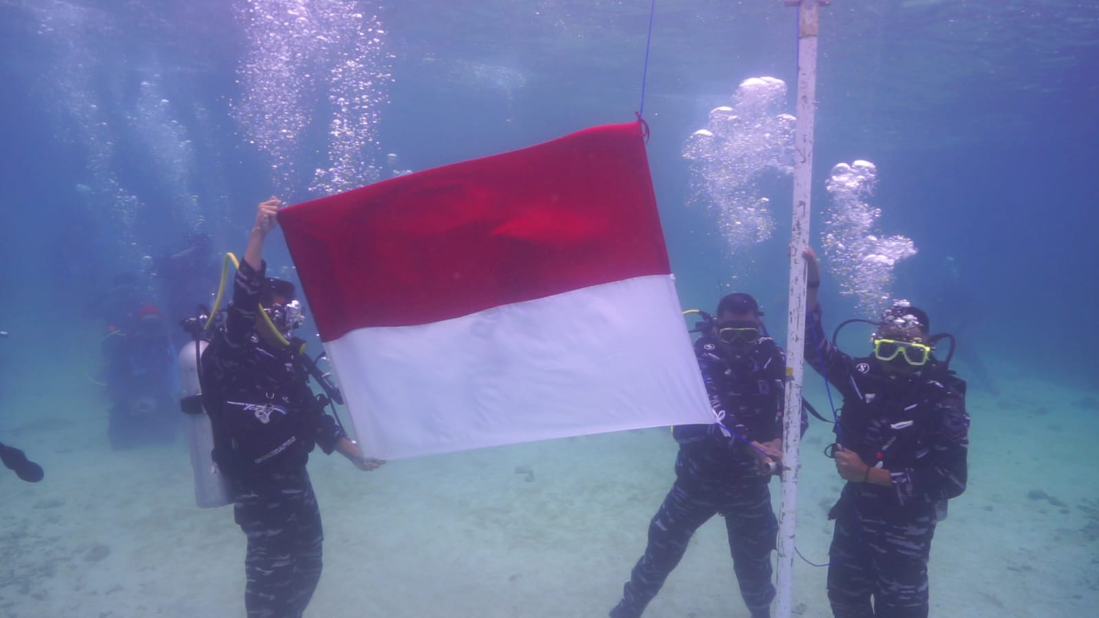 Selain itu, Danbrigif menambahkan, momen pengibaran bendera di bawah laut ini juga bertujuan untuk menunjukkan betapa luasnya laut Nusantara dengan berjuta kekayaan di dalamnya.