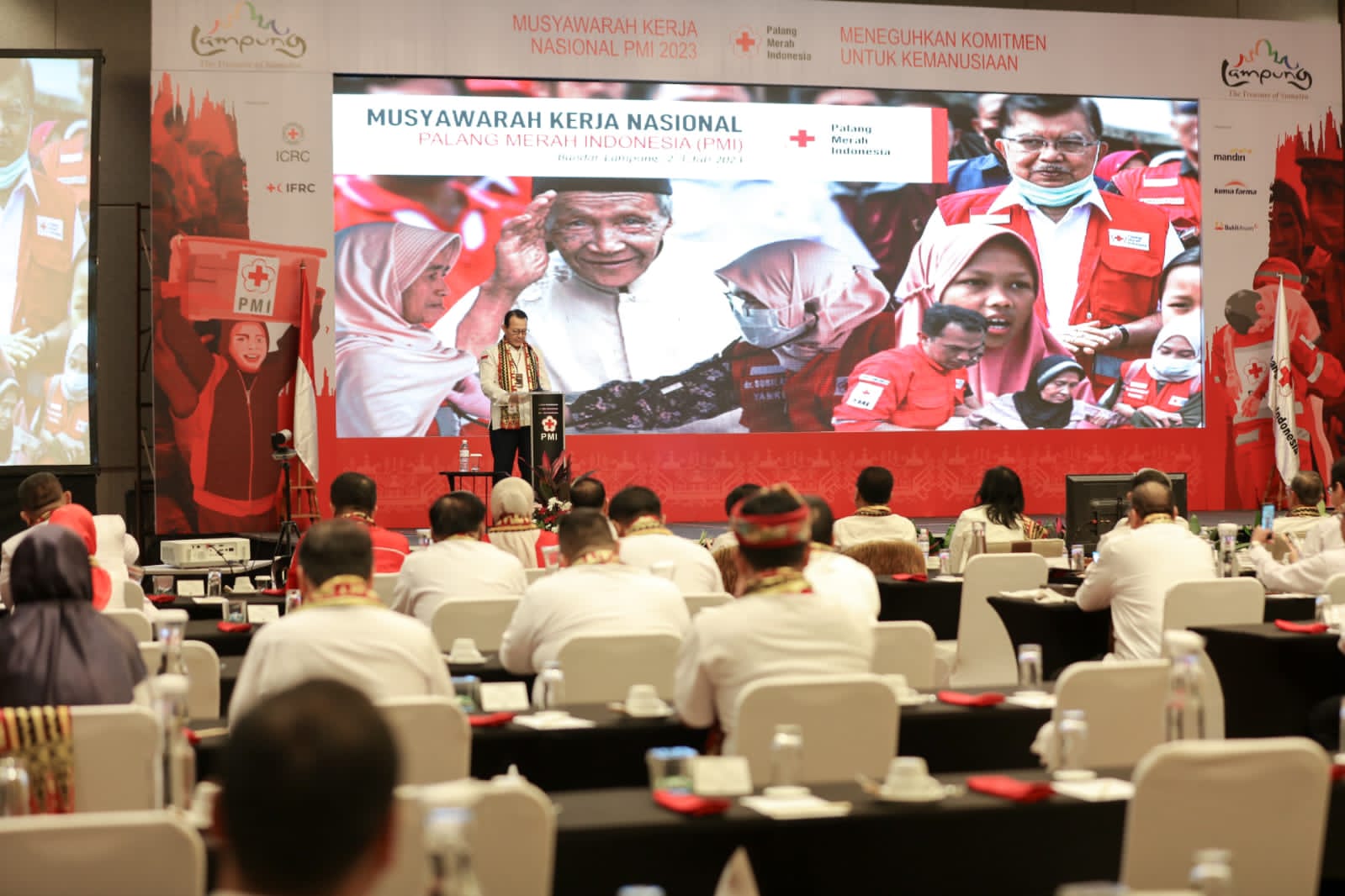 JK sapaan akrabnya membuka kegiatan Musyawarah Kerja Nasional (Mukernas) PMI tahun 2023 yang digelar di Hotel Radisson, Bandar Lampung, Senin (3/7).