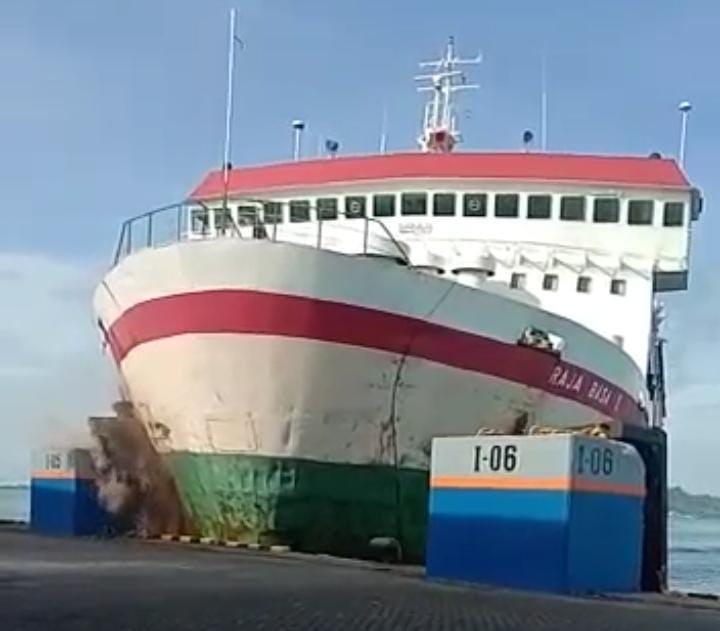 Lampung Geh, Lampung Selatan – Sebuah video amatir menampakkan Kapal Feri menabrak fender nomor 8, Dermaga 1 Pelabuhan Bakauheni Lampung Selatan, Minggu (3/7) sekitar pukul 15.45 WIB.