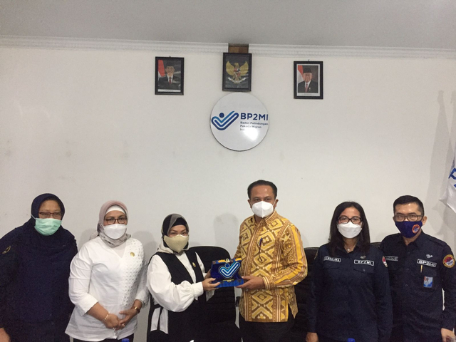 Pemberian cindra mata BP2MI kepada deputi bidang pelayanan publik kementrian PAN RB | Foto : Ist