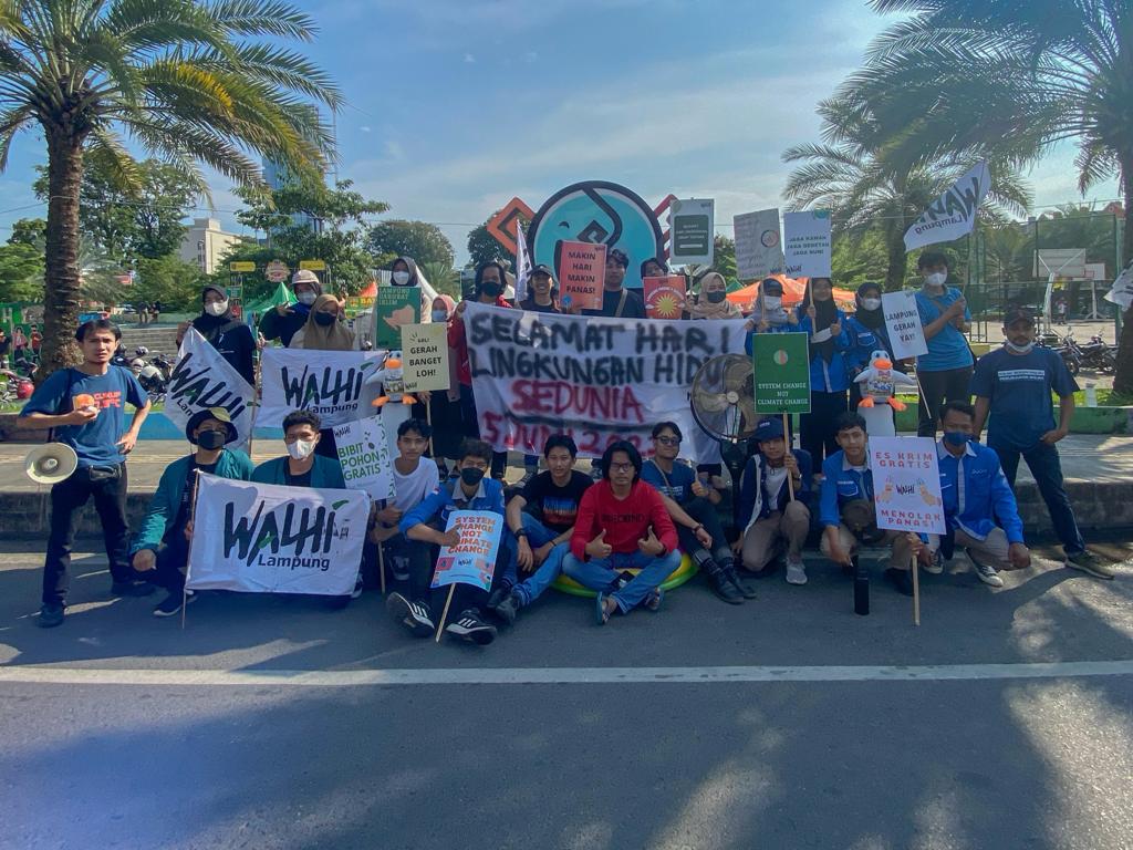 “Hari ini Walhi Lampung bersama dengan kelompok pemuda, pemerhati lingkungan, mahasiswa, kelompok pecinta alam, aktivis, dan elemen masyarakat lainnya melakukan aksi peringatan Hari Lingkungan Hidup Sedunia,” ungkapnya.