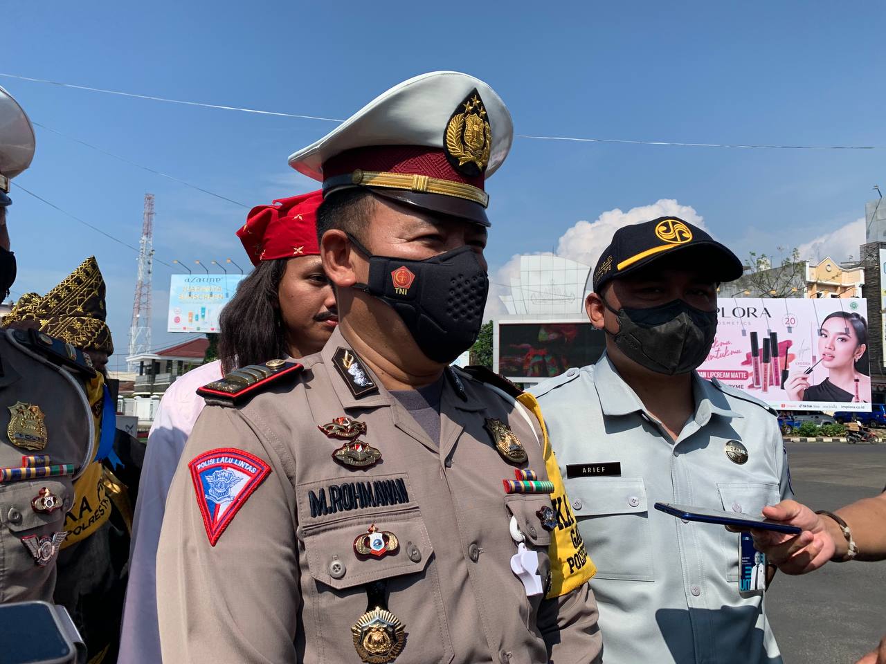 Kasatlantas Polresta Bandar Lampung, AKP M Rohmawan saat diwawancarai usai gebyar lalu lintas. | Foto: Bella Sardio/ Lampung Geh