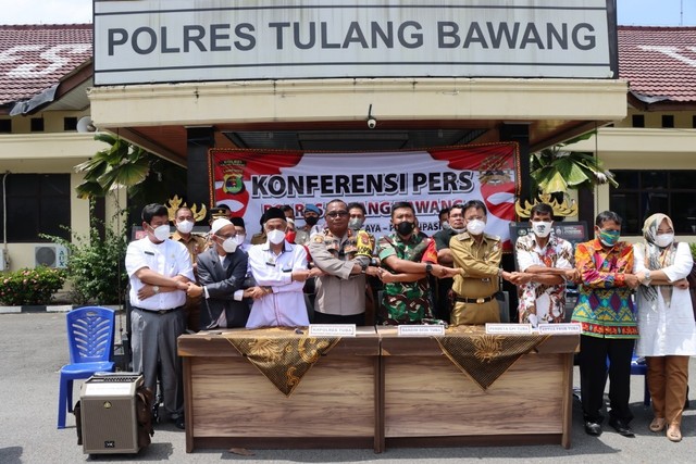 Kapolres Tulang Bawang AKBP Hujra bersama TNI dan jajaran tokoh agama di Tulang Bawang. | Foto: Ist