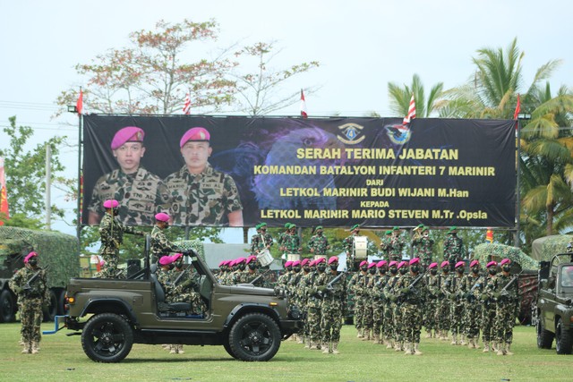 Sementara itu, Letkol Marinir Mario Steven, mengatakan jika jabatan ini menjadi sebuah tantangan baru yang akan dihadapinya dalam membawa Batalyon Infanteri 7 Marinir menjadi lebih baik.