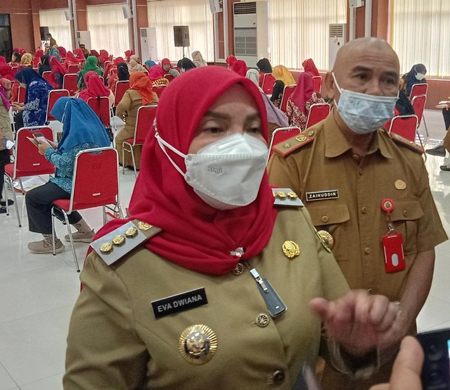 Wali Kota Bandar Lampung Eva Dwiana saat diwawancarai awak media, Selasa (23/11) | Foto : Sidik Aryono/Lampung Geh
