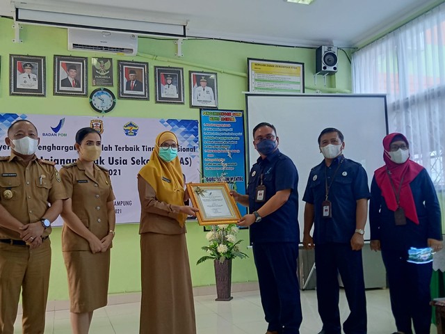 Lampung Geh, Bandar Lampung – SMP Negeri 7 Bandar Lampung menerima penghargaan dari Badan Pengawasan Obat dan Makanan (BPOM), atas diraihnya juara 3 tingkat nasional kategori Pangan Jajanan Anak Usia Sekolah (PJAS), Senin (22/11).