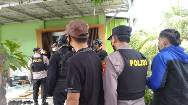 Penggeledahan yayasan yang dulunya bernama LAZ BM ABA di Pringsewu, Lampung. | Foto: Bella Sardio/ Lampung Geh